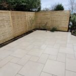 The customer’s brief was to replace the existing adjoining fence that was covered in ivy with a featheredge fence which was strong enough to have a decorative fence added to it to create a light and pleasant backdrop for a porcelain patio and gazebo.
